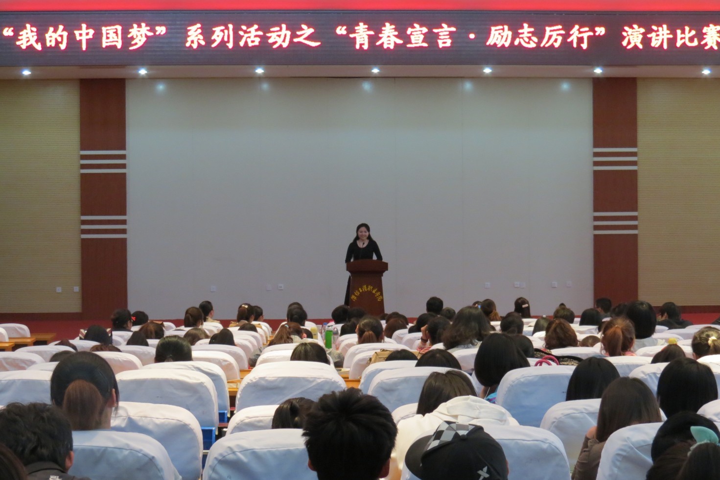 为引导我院大学生深入贯彻党的十八大精神对“中国梦”的深情阐释,畅想民族复兴“中国梦”的光明前景,激发我院学生追梦圆梦的动力,提高学生的演讲口才,宣传统战部、团委学生处举办“青春宣言•励志厉行”主题演讲比赛。