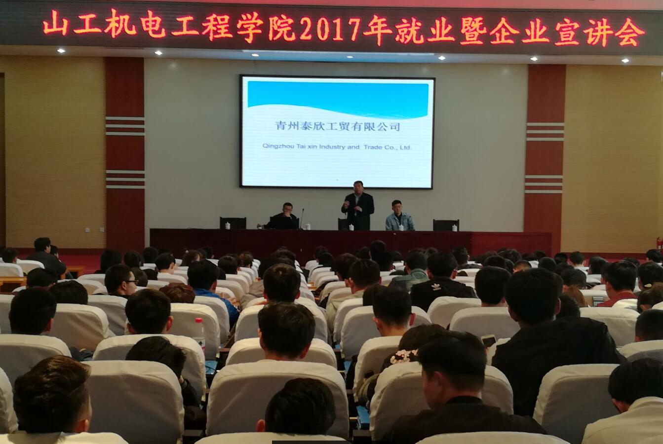 4月13日下午,山工机电工程学院2017年就业暨企业宣讲会在学术报告厅举行。此次宣讲会邀请到校企合作单位卡特彼勒青州有限公司的战略供应商青州市北联工业有限公司、青州泰欣工贸有限公司、青州市铸威新材料科技有限公司三家公司负责人为我院2015级全体学生进行就业培训和企业宣讲。