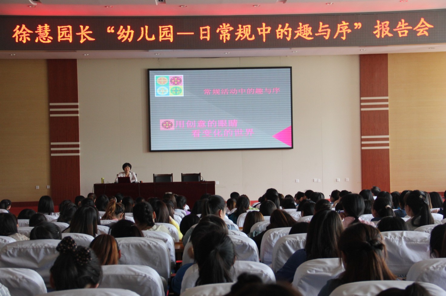 4月24日下午,潍坊市万花筒幼儿园园长徐慧在学术报告厅为我院师生作了题为“幼儿园一日常规中的趣与序”的报告。我院学前教育专业全体教师和2012级部分学生400余人聆听了报告。