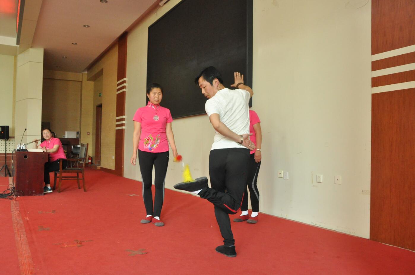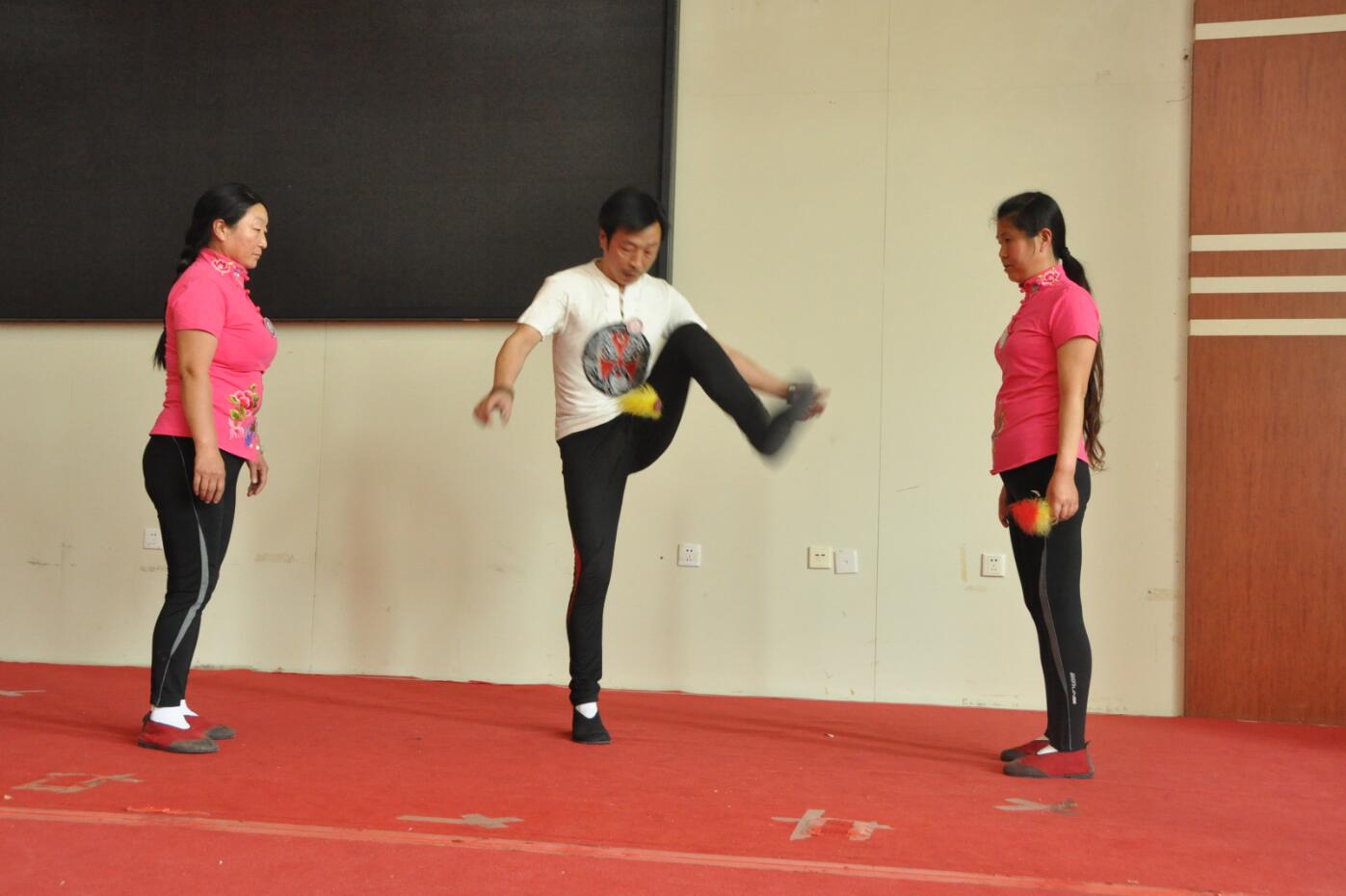 李红老师和她的团队,向同学们现场示范了青州花毽的花样踢法。花毽分一般毽、观赏毽和比赛毽。青州花毽讲究身形架步优美、心意相随、眼到脚到、反应灵活、人随毽舞、毽随人转;低踢毽如彩蝶飞舞,高踢毽如凌空飞燕。平时踢毽健身,比赛时以花样多少、难度高低、时间长短、动作优美程度为考核标准。青州花毽花样有108种,即天罡36式和地煞72招。天罡36式是将青州风土民情、山川景物等与花毽名称、花样等紧密结合,是青州花毽的代表;地煞72招是我国传统花毽花样。