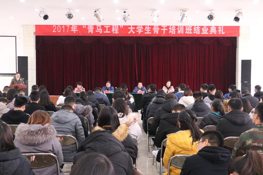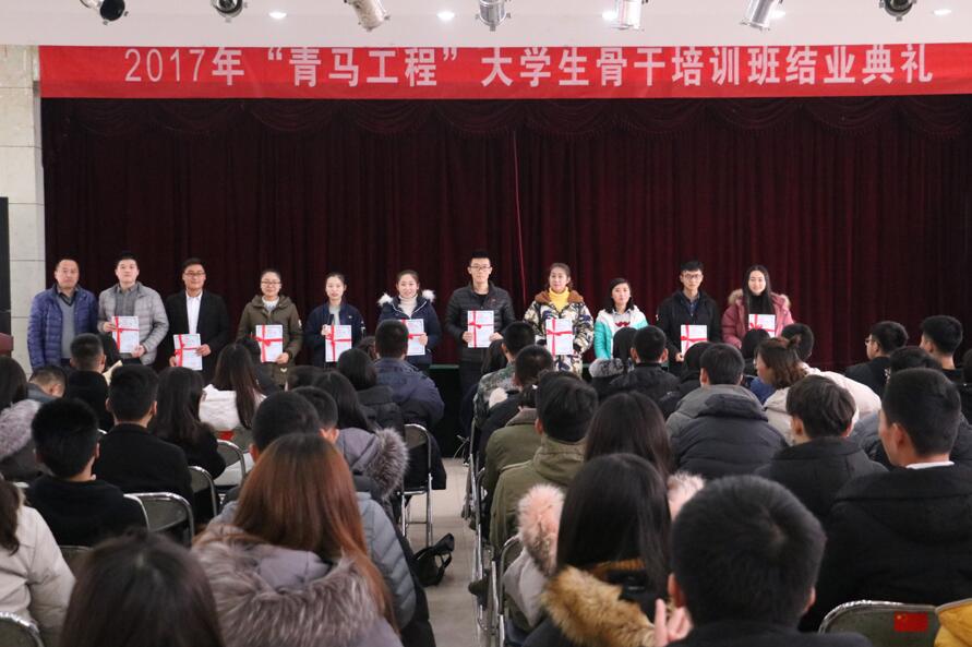 11月30日下午,我院2017年“青马工程”大学生骨干培训班结业典礼在学院大学生活动中心举行。学院团委学生处主要负责同志出席结业典礼,院学生会、社团联合会、自律委员会、大学生助学服务团、学生社团、广播站以及各系院共148名参训学员参加了结业典礼。