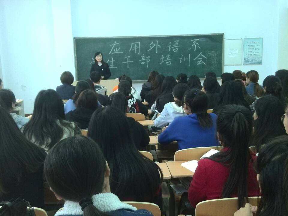 为了加强学生干部的管理能力,提高其工作的积极性与创造性,增强服务意识,应用外语系于10月24日召开了学生干部培训会。应用外语系党支部书记、辅导员和全体学生干部参加了此次专题培训会议。
