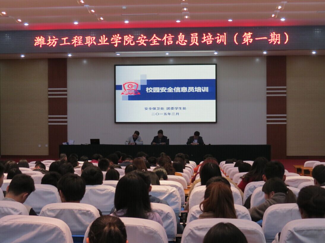为贯彻学院新学期工作会议精神,进一步做好校园安全工作,健全学生安全管理网络,3月26日下午,安全保卫处联合团委学生处在学术报告厅召开了安全信息员培训会。全院各班选派的300余名安全信息员、院学生会干部和入党积极分子参加了培训。