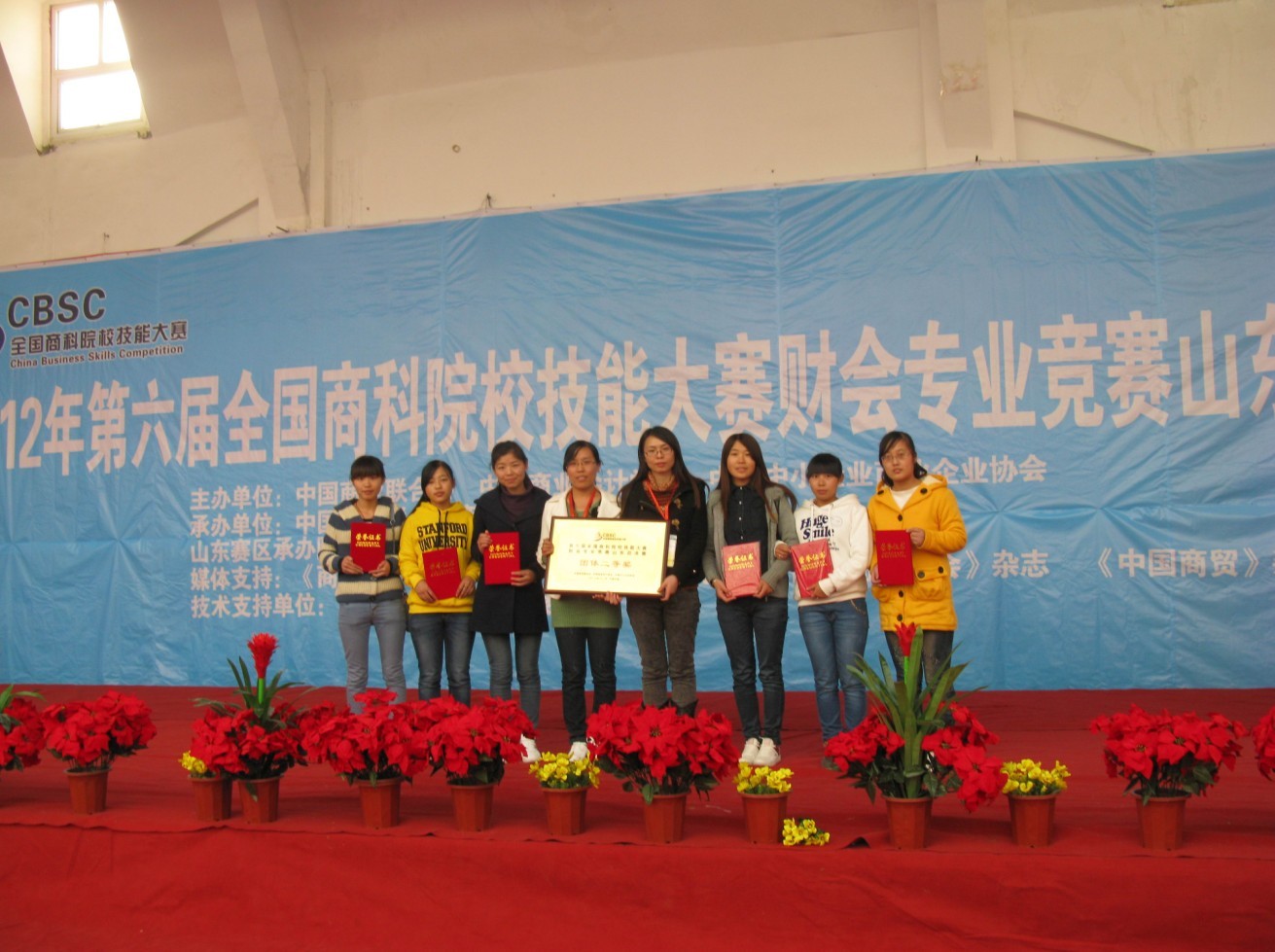 10月31日至11月1日,会计与统计学院学生参加了在济南举行的2012年(第六届)全国商科院校技能大赛财会专业竞赛山东总决赛。此次比赛我院共派出两支代表队,其中由仇军聪、庄岩、隋萍组成的代表队获得一等奖,樊欣、刘璐、刘丹组成的代表队获得二等奖,我院获得团体二等奖。刘晶晶、李雪梅、孙玉芹老师分别荣获优秀指导教师奖。