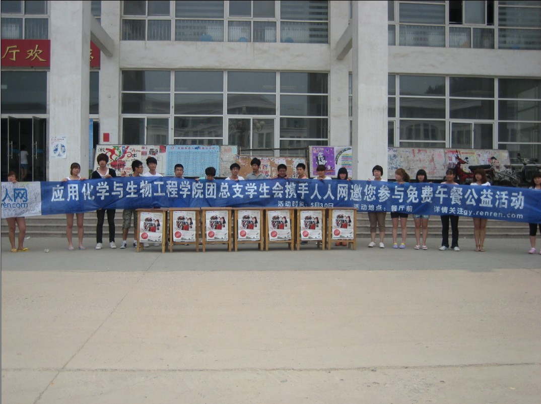 为弘扬公益精神,推动公益事业,动员在校大学生关注贫困边远地区的儿童,5月30日,应用化学与生物工程学院携手人人网在餐厅门口举办“免费午餐,关爱儿童成长”签字活动。