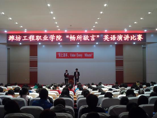 11月1日,我院大学生文化艺术节“畅所欲言”英语演讲比赛在学术报告厅举行。比赛包括演讲、现场提问两部分,选手们声情并茂进行了演说,外教Frank现场进行了提问,选手们以其清晰的语言、流利的语调、丰满的文字内容,和自信的微笑, 展现出自己优异的英语水平和良好的心理素质。中场休息时间,语言学院同学分别用英汉韩三种语言为大家带来了精彩的歌唱节目。本次比赛丰富了同学们的课余生活,提高了同学们学习英语的热情,对提高同学们的英语水平起了积极的作用。