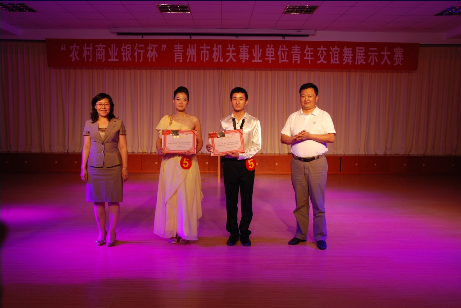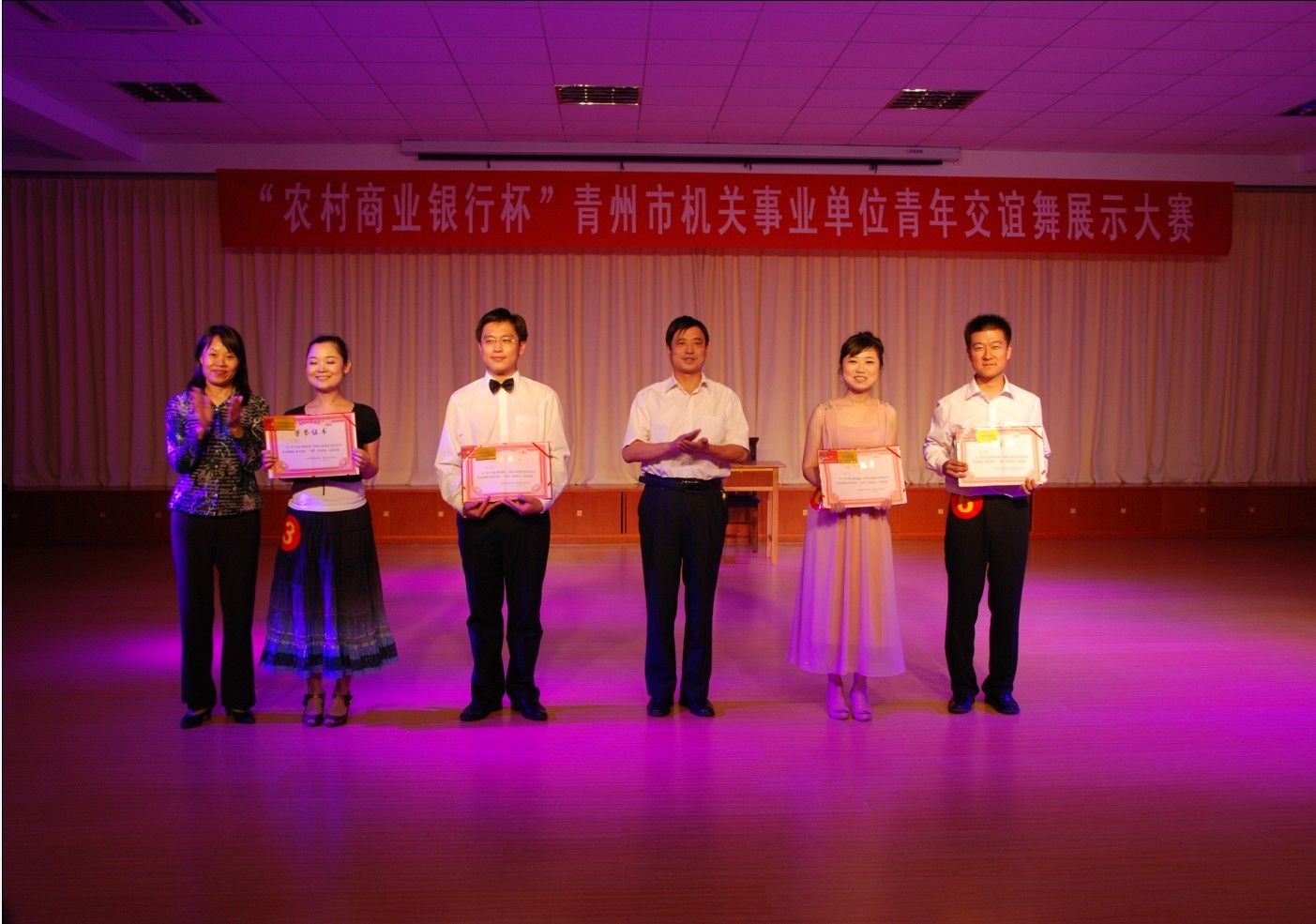 6月5日晚,“农村商业银行杯”青州市机关事业单位青年交谊舞展示大赛在我院举行。我院院长肖明胜,副院长王金明,青州市委常委、宣传部长高凌云等出席展示大赛并为获奖选手颁奖。