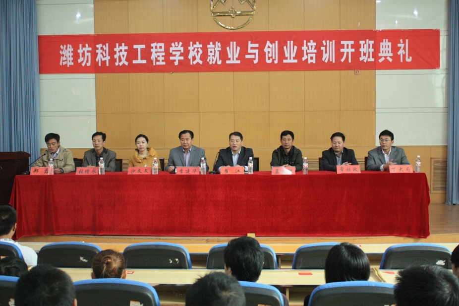 10月23日上午,潍坊科技工程学校创业与就业能力培训班开学典礼在北校区学术报告厅举行。青州市人力资源管中心主任、青州市人社局副局长李建华,青州市人社局创业与就业培训相关科室工作人员、我院培训处负责同志、中专部有关人员及136名学员参加开学典礼。