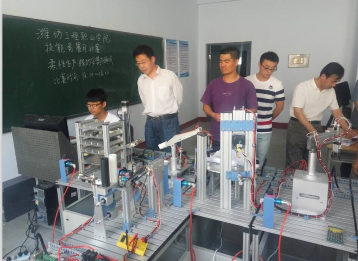 为认真贯彻落实我院“2017年技能活动月”精神,进一步促进学生理论与实践结合,提高动手能力,增加同学间的合作与竞争意识。5月25日,山工机电工程学院在东校区工程中心成功举办了“柔性生产线的安装与调试”大赛。