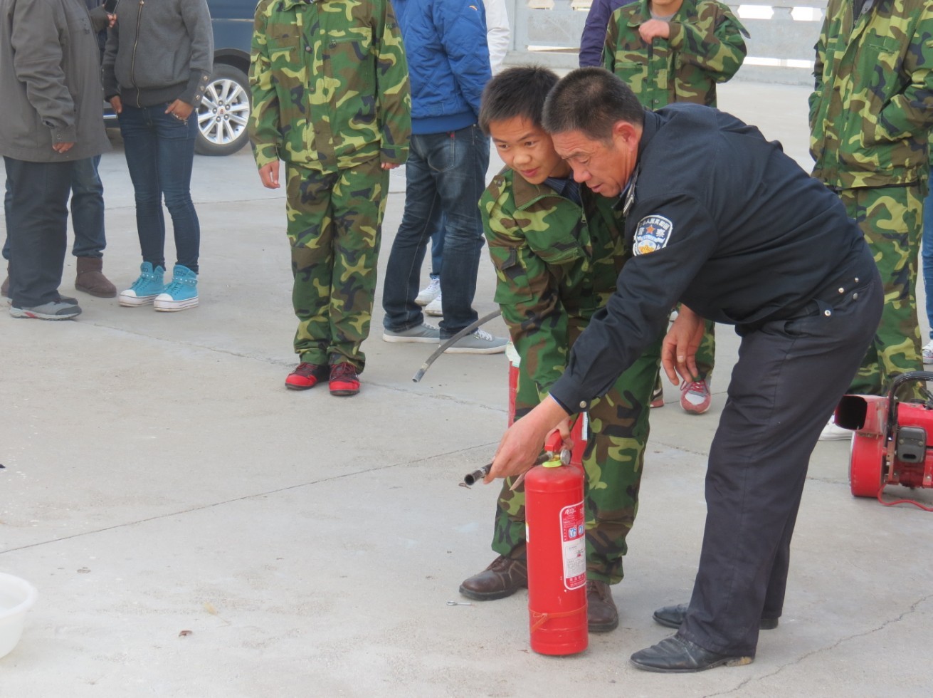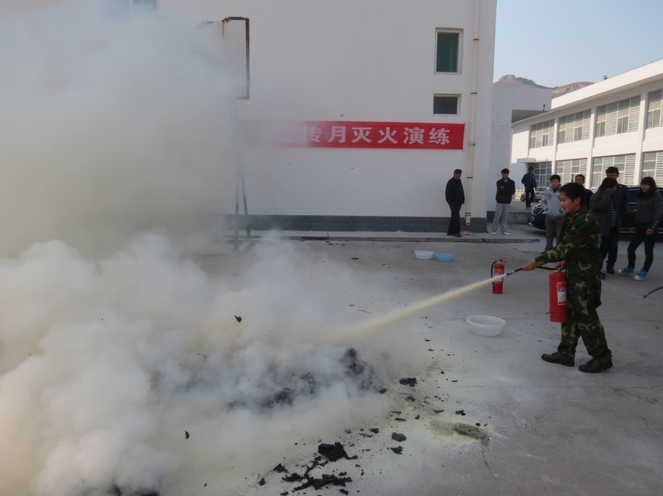 一是组织消防灭火演练。11月6日,学院安全保卫处会同各院系、各职能部门举行了一场大规模的消防演习,正式启动了我院为期一个月的消防宣传活动。在灭火演练现场,担任教官的安全保卫处工作人员悉心为参加演习的师生讲解灭火器的基本操作方法和发现火情时的灭火步骤,并指导参训人员分组进行现场灭火演习。模拟点燃了一着火点,手提灭火器的参训人员立即提起灭火器冲向“火海”,拔下插销,对准熊熊火焰喷射,着火点的烈火很快被扑灭。演习现场充满浓厚的实战氛围,广大师生踊跃参训,竞相学习演练各项消防技能。