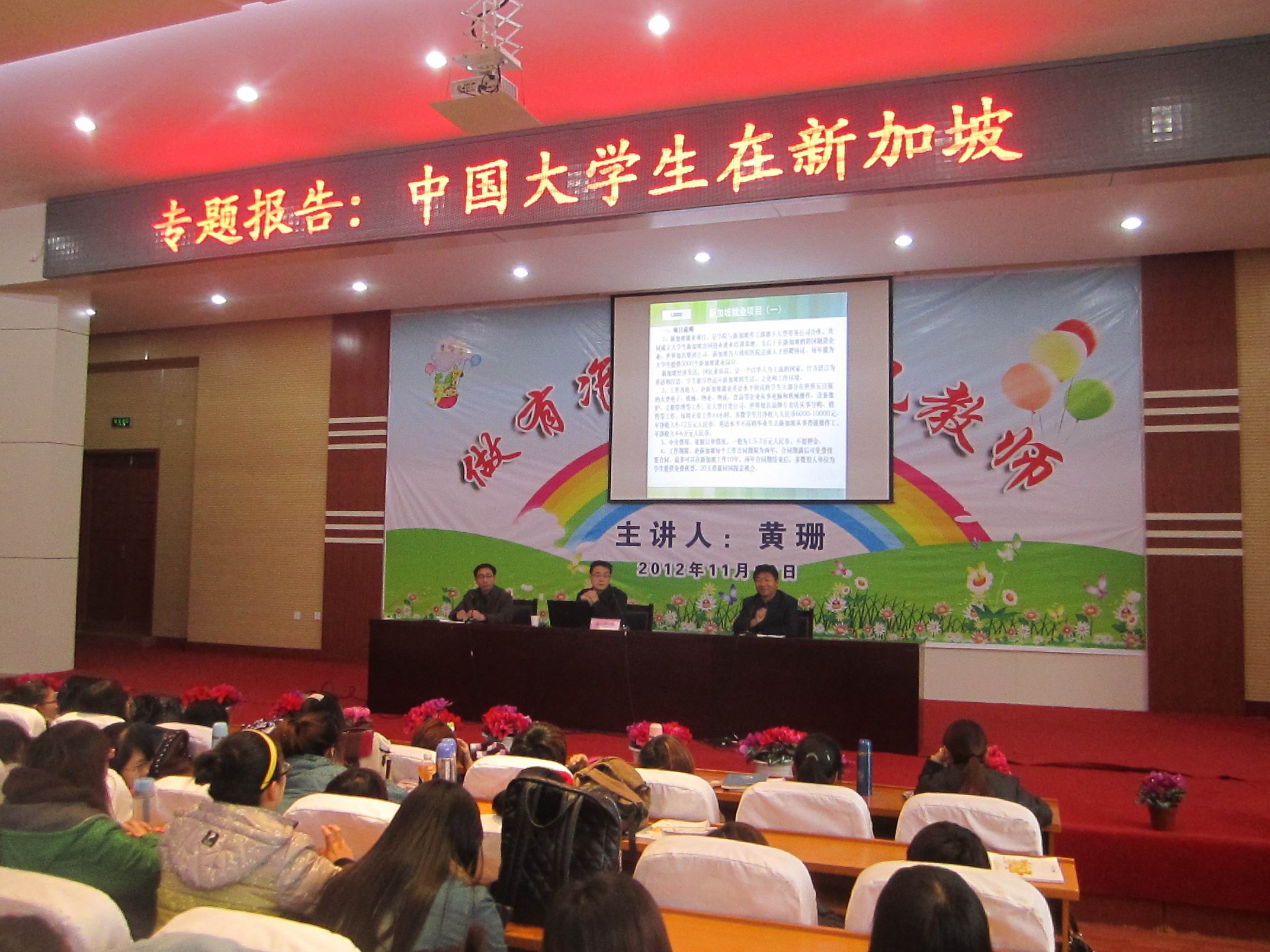 11月21日下午,基础教学部和培训处、图书馆合作,邀请威海外国语培训学院境外就业处处长姜永泉来院作题为《中国大学生在新加坡》的专题报告。各院系辅导员和学生、培训处老师、青州民族技师学院、潍坊护理职业学院招生就业处老师参加了此次报告会。