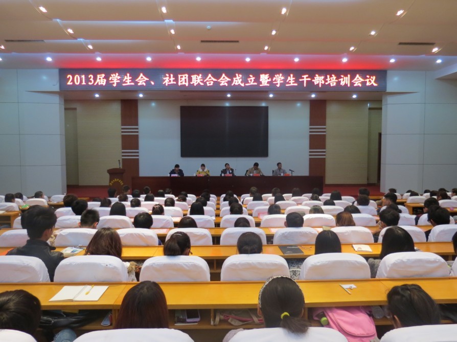 10月24日,2013届院学生会、社团联合会成立大会暨学生干部培训会议在学术报告厅举行。副院长王金明出席会议,团委学生处负责人、学生会、社团联合会成员,学生干部代表近300人参加了大会。
