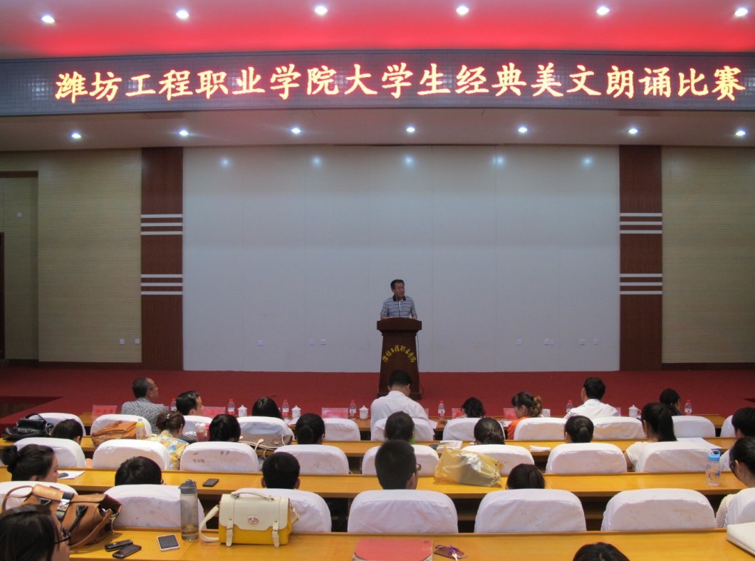 经典美文,是中华文化璀璨的明珠,是历代文人智慧的结晶,是人类宝贵的精神财富。为进一步倡导大学生多读书,读好书,读经典,悟人生,提高文学修养,提升阅读能力,丰富校园文化生活,提高普通话和朗诵水平,5月23日,图书馆、团委学生处在学术报告厅联合举办了大学生经典美文诵读比赛。本次比赛得到了各院系的大力支持,他们认真组织,积极参与,经过选拔,最终有15名选手进入决赛。
