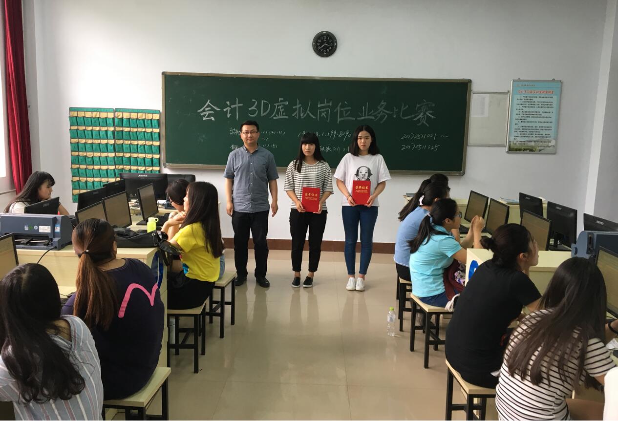 在学校各院系积极开展职业教育活动周活动的良好氛围下,会计与统计学院为加强学风建设,培养具有较强就业竞争力、适应性强的技能型人才,于5月11日下午在1202实训室举办了会计3D虚拟岗位业务比赛。本次大赛由2015级8个班级筛选出的共20名选手参加,大赛共设一等奖2名,二等奖3名,三等奖4名。经过激烈角逐,一等奖被来自2015级会计与审计班级的胡莹和张琳同学摘得。