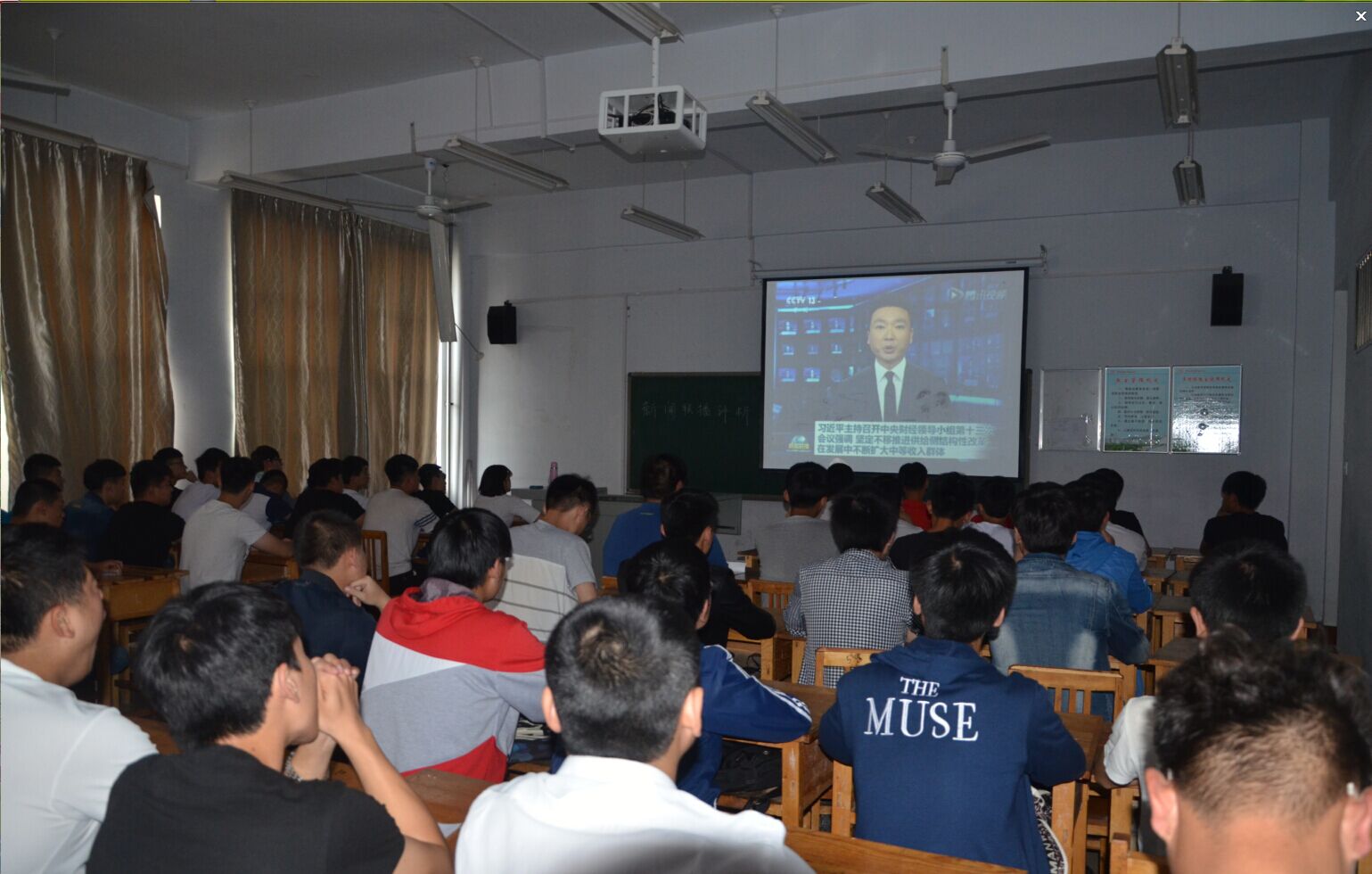 中央电视台的《新闻联播》节目,不仅能及时报道社会突发事件,而且对正确认识国际国内问题具有教育引导作用。为此,我院从2014年开始就把天天收看《新闻联播》作为加强学生思想政治教育的辅助手段,组织学生利用晚自习时间每天观看中央电视台《新闻联播》节目,观看《新闻联播》已成为山工机电工程学院思想政治教育工作的常态化内容。