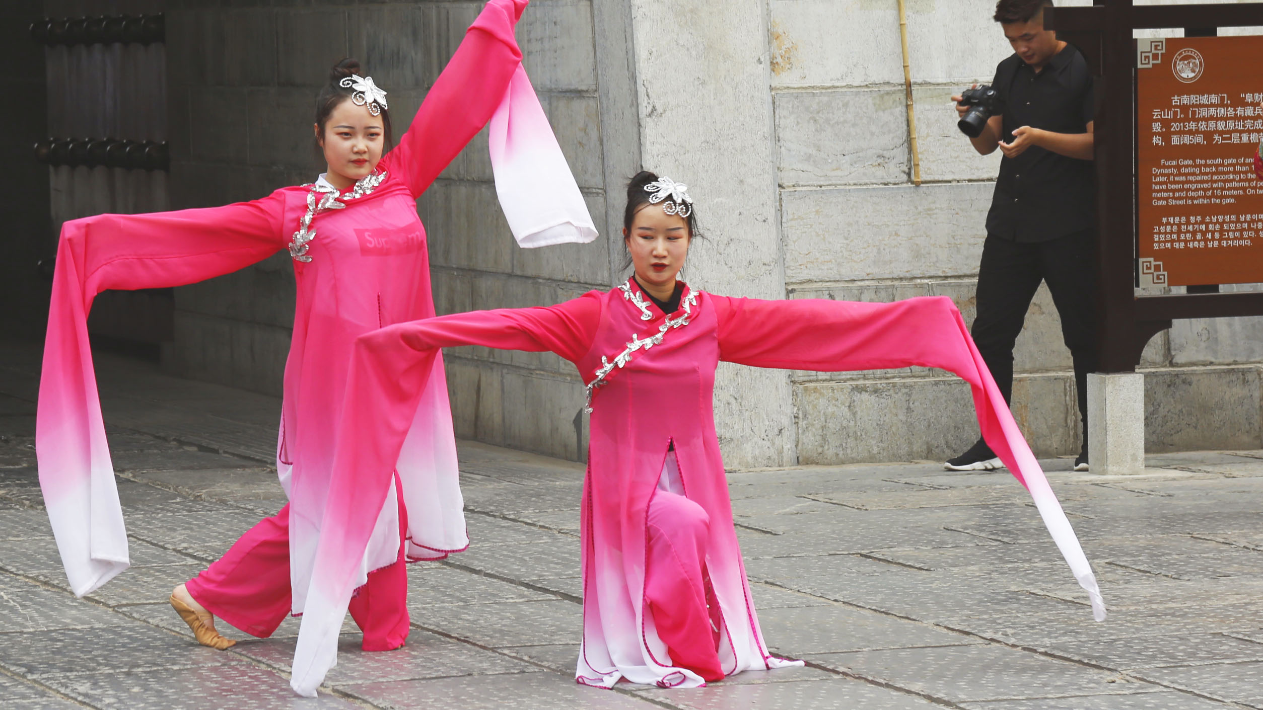 中专教学部女子威风锣鼓队的表演声势宏大、鼓点节奏铿锵、服装整齐艳丽,吸引了古街社区群众和古城游客驻足围观、拍照留念,精彩的表演博得了阵阵掌声。锣鼓队表演之后,中专教学部校园艺术团为围观观众送上文艺节目,成为了当天青州古城的一道独特的风景线。