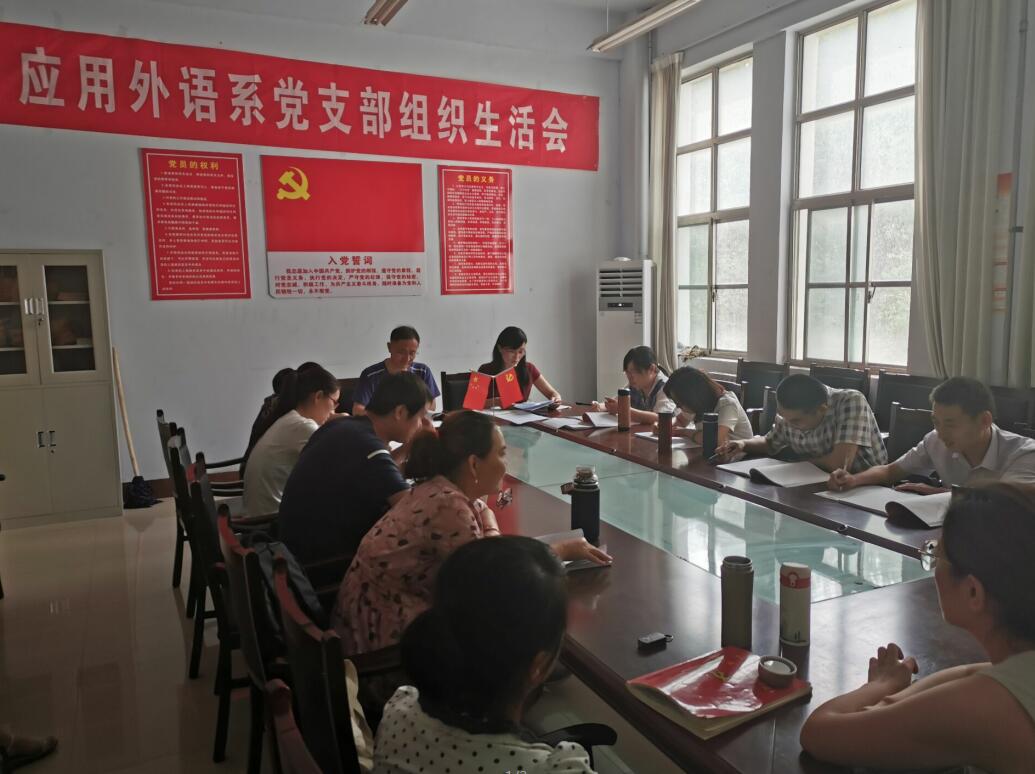 6月13日下午,应用外语系党支部召开全体党员大会,组织观看学习了习近平在“不忘初心、牢记使命”主题教育工作会议上的重要讲话。