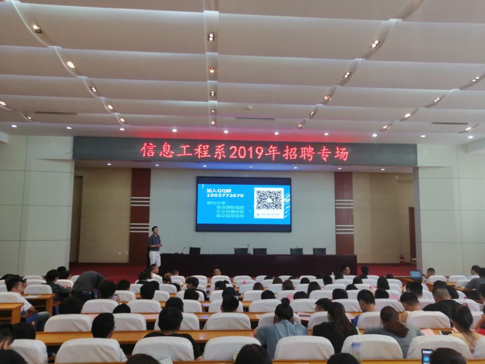 在当天上午进行的企业宣讲会上,该系党支部副书记对用人单位的到来表示欢迎,并向同学们简要介绍了用人单位的基本情况,他说,参加此次招聘会的用人单位都是与信息工程系保持密切合作关系的企业,在信息技术类领域取得了一定的成绩,前景良好,目前正处于发展的关键时期,非常渴望青年人才加入其中,本次用人单位提供的岗位也与该系学生所学专业非常契合,希望同学们能够抓住这次机会,对有意向的单位要敢于毛遂自荐。