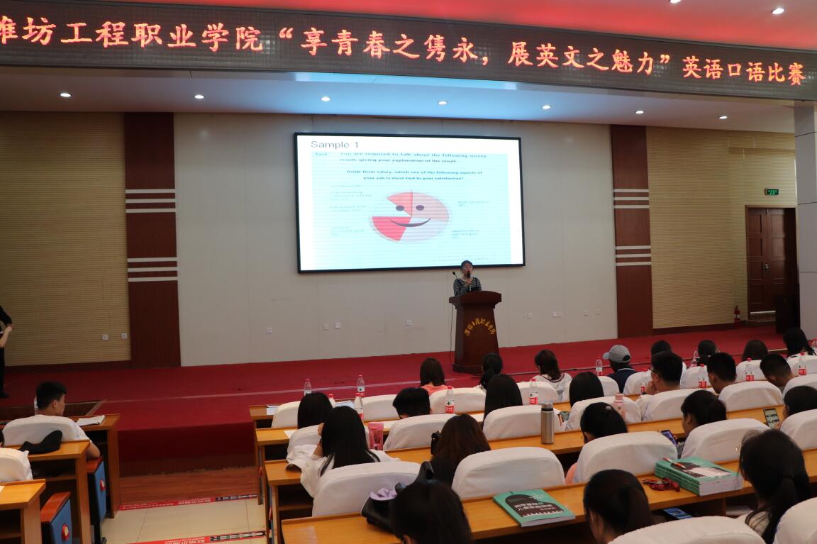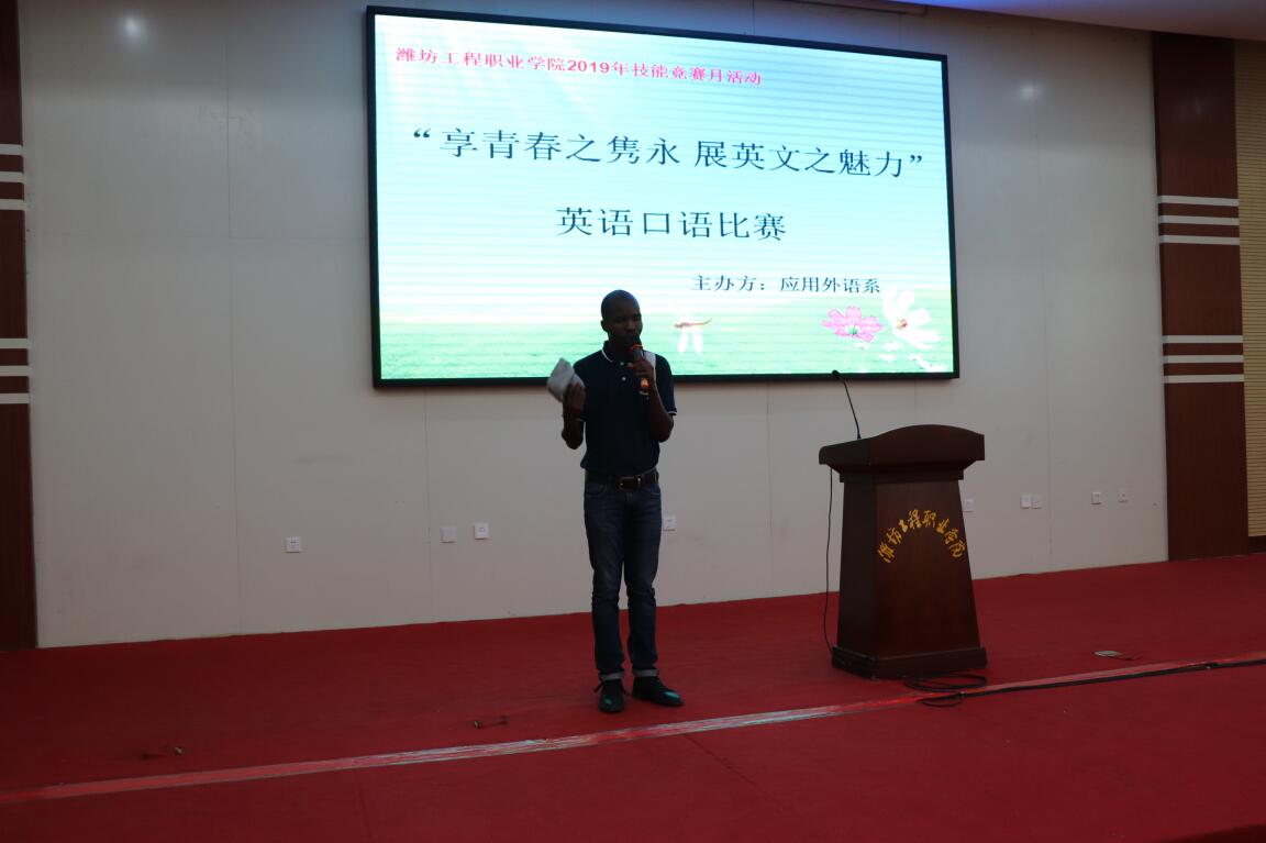 为了以赛促教、以赛促学,进一步激发学生学习英语的积极性,提高学生运用英语进行职场交际的综合素质,结合学院技能竞赛月活动,应用外语系于5月23日下午在学术报告厅举办了“享青春之隽永,展英文之魅力”英语口语大赛。应用外语系教师以及外教Senzo担任此次大赛的评委。