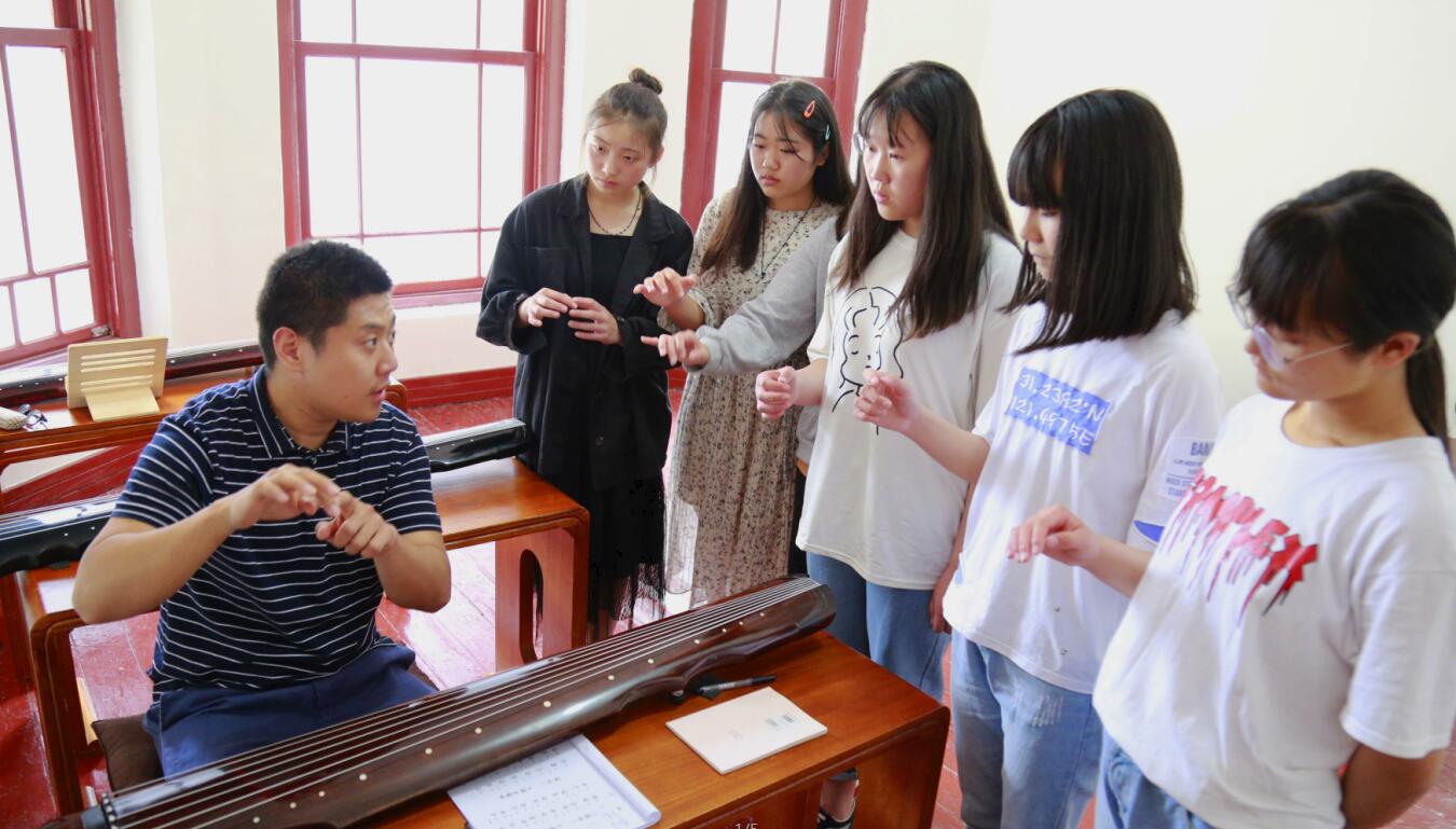 开设古琴弹奏课程班,是学院优质校建设项目的重要内容,是培真书院文研院的重要活动,也是中专部传承非物质文化遗产、发展特色美育的又一举措。课程班定在每周的周二周三下午课外活动时间上课,分两组,每天一组,每组6人,以保证授课效果和效率。古琴课让学生近距离触摸中华优秀传统文化,增强了学生的文化认同感和自豪感,在一弹一拨间穿越历史长河,实现了古琴文化的活态传承。