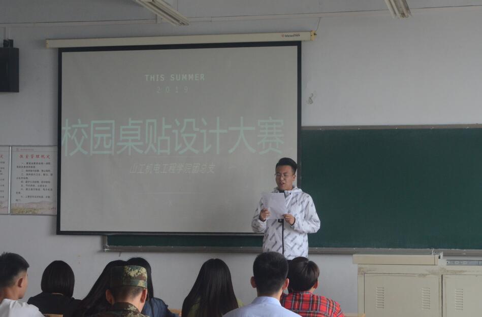 5月10日,由团委学生主办、山工机电工程学院团总支承办的校园桌贴设计大赛在山工机电工程学院4206教室举办。该院部分老师和各系院学生参加此项活动。