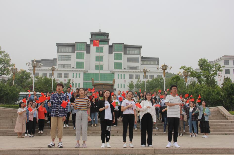 五号楼前,一曲《我和我的祖国》把对祖国的赞美表露无遗;图书馆前,同学们又唱起了《最初的梦想》,一张张朝气蓬勃的笑脸,一个个铿锵有力的青春节拍,映衬着手中飘扬的国旗,彰显着青春的魅力。