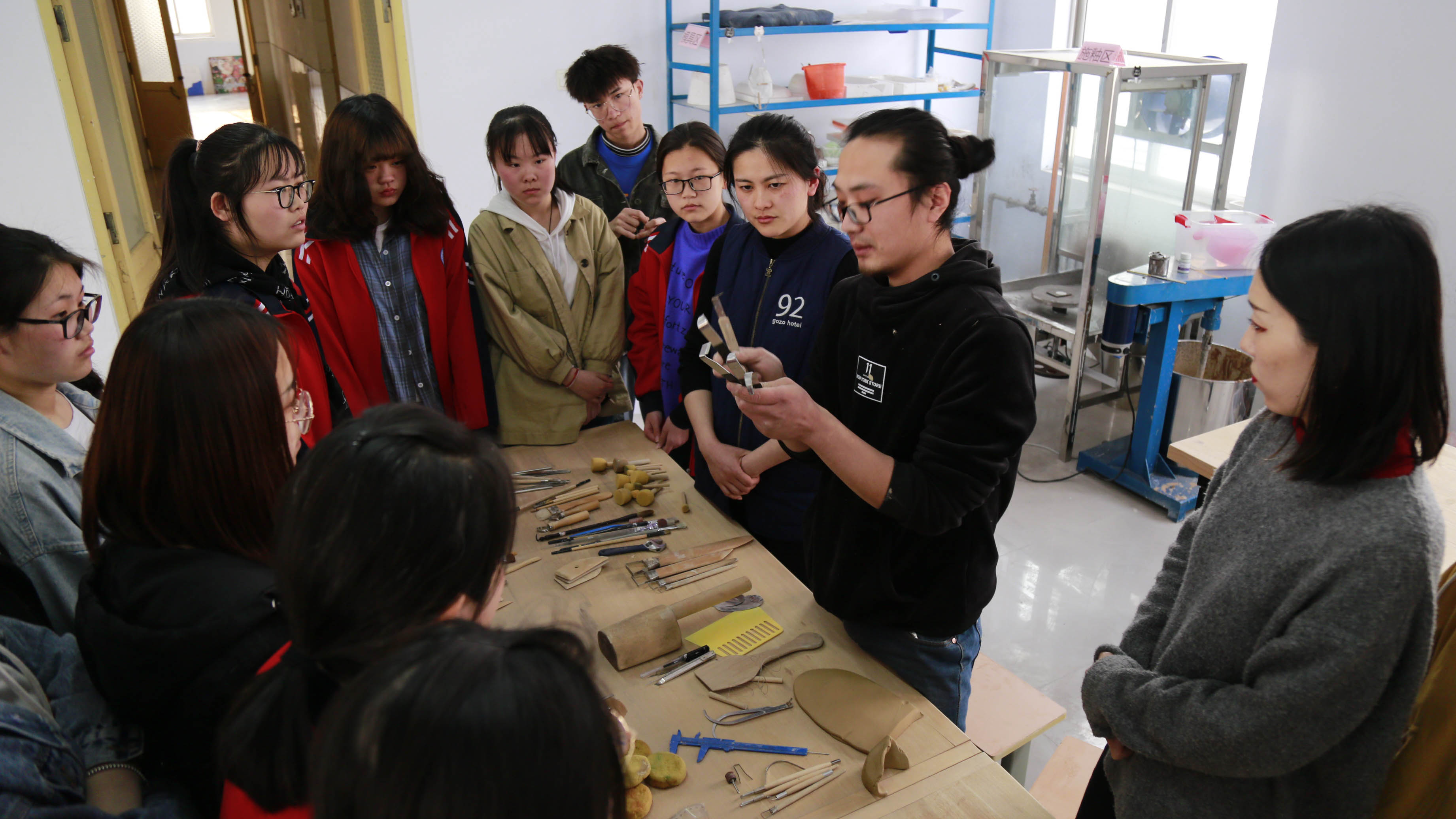 4月2日下午,中专教学部雅拙陶艺坊举办的陶艺课程班正式开班。陶艺坊负责人致辞,来自各专业的首批24名学生开始陶艺学习。