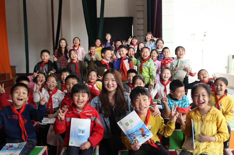 “蓝蓝的天空银河里,有只小白船,船上有棵桂花树,白兔在游玩……”志愿者张璐媛用优美的钢琴曲给学生们弹奏《小白船》,她将歌曲简谱写到黑板上,一个音符一句词地教,孩子们专注认真地一句一句学。歌舞表演专业的志愿者为孩子们手工制作了小白船作为课堂奖励,大大提升课堂参与度,受到孩子们的热烈欢迎,孩子们质朴的声音久久回荡在文化礼堂。