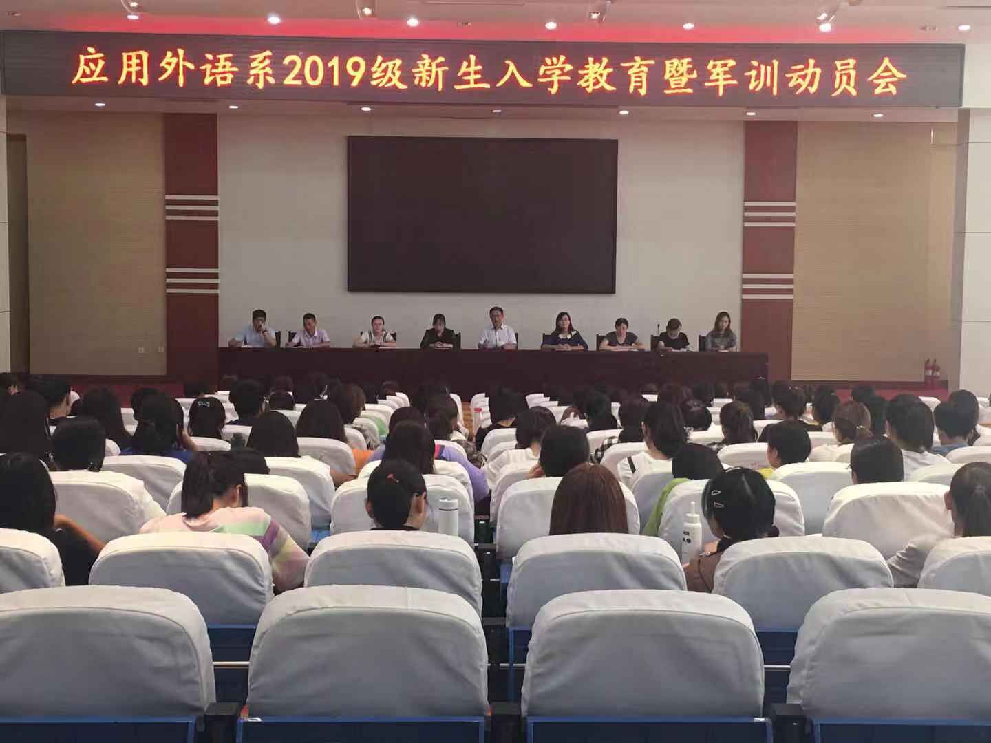 9月1日上午,应用外语系在图书馆报告厅召开新生入学教育暨军训动员会,应用外语系主任、党支部书记、教研室主任和辅导员参加会议。