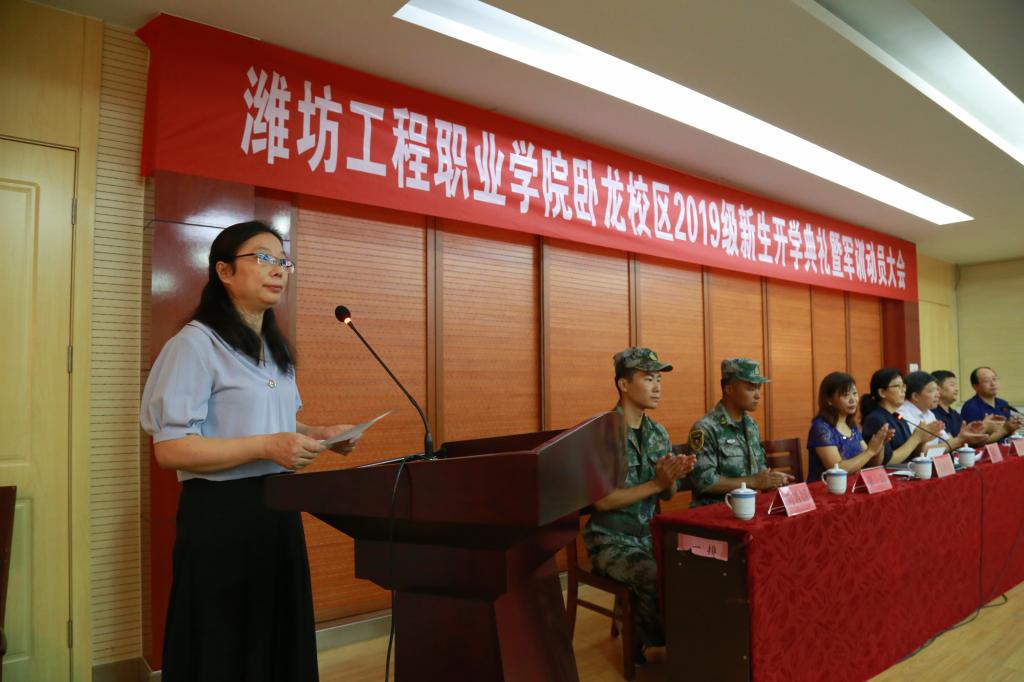 9月2日上午,卧龙校区在教学楼一楼阶梯教室召开新学期开学典礼暨军训动员大会。校区领导班子及来自昌乐火焰户外拓展中心的两位教官张磊、何吉国出席典礼,典礼由副校长张丽莉主持,全体师生参加会议。