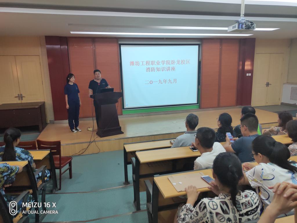 为进一步提高广大师生的消防安全意识和自防自救能力防灾减灾意识, 9月5号下午,卧龙校区邀请奎文消防大队讲师徐老师,给全校师生做了一场精彩的消防知识专题讲座,并穿插进行了消防知识讲座并进行现场灭火演练。
