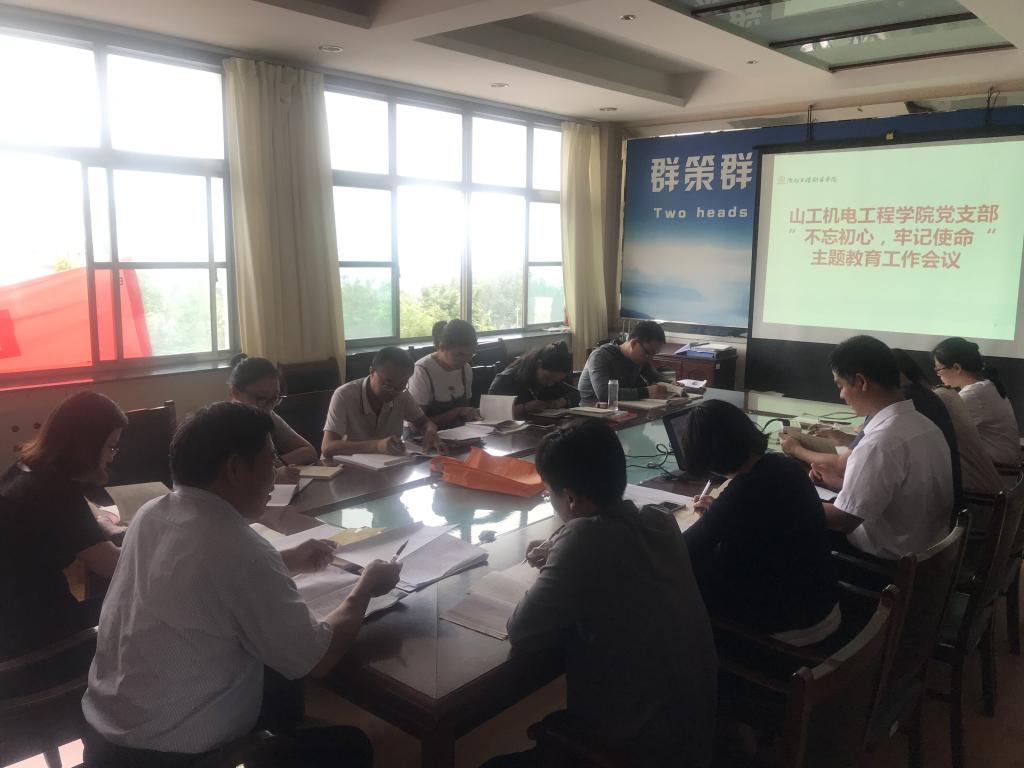 9月12日,山工机电工程学院党支部组织全体党员在4208会议室召开“不忘初心、牢记使命”主题教育工作会议,该党支部“不忘初心、牢记使命”主题教育已全面启动。