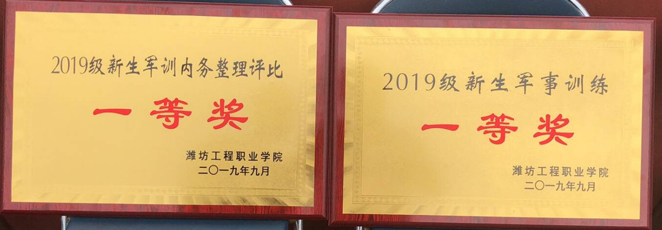 在新生军训综合评比中,荣获2019级新生军训内务整理评比一等奖、2019级新生军事训练一等奖。
