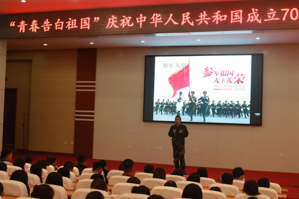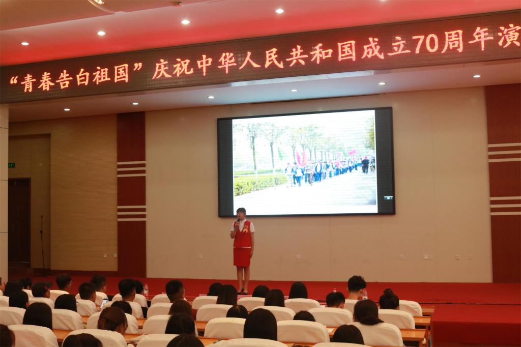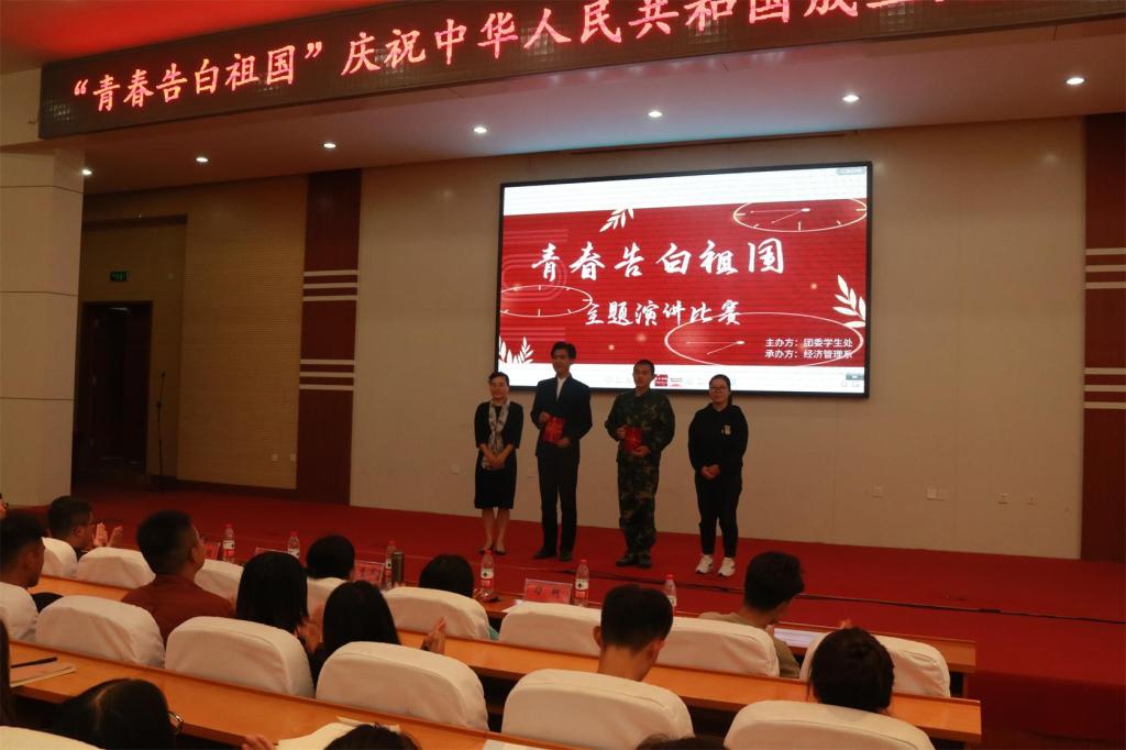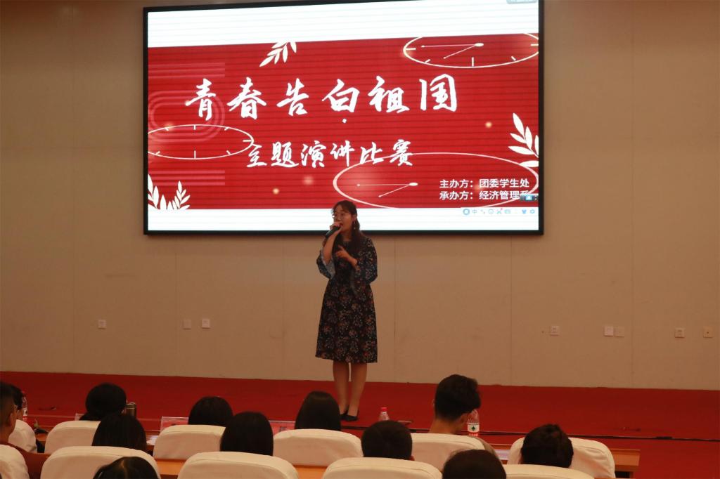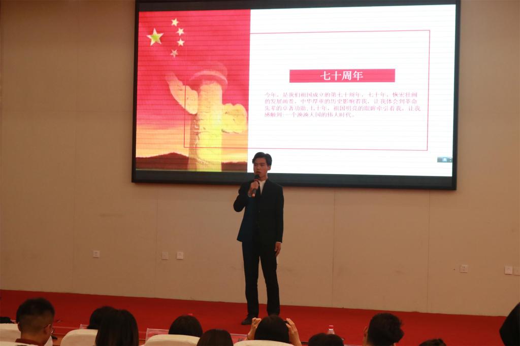 为庆祝中华人民共和国成立70周年,弘扬爱国主义精神,9月19日晚,由团委学生处与经济管理系共同举办的“青春告白祖国演讲比赛”在学术报告厅举行。各院系学生代表参加。