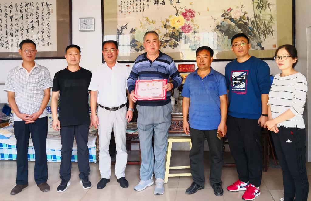 随后,一行人在史主任的带领下,看望了在朝阳社区居住的中国老年书画研究会会员、中国农民书画研究会会员、青州市书法家协会会员唐曾禄。王兆才向唐曾禄颁发聘书,聘任他为中专教学部艺术顾问。唐曾禄向中专教学部党支部赠送书法书籍表示感谢。