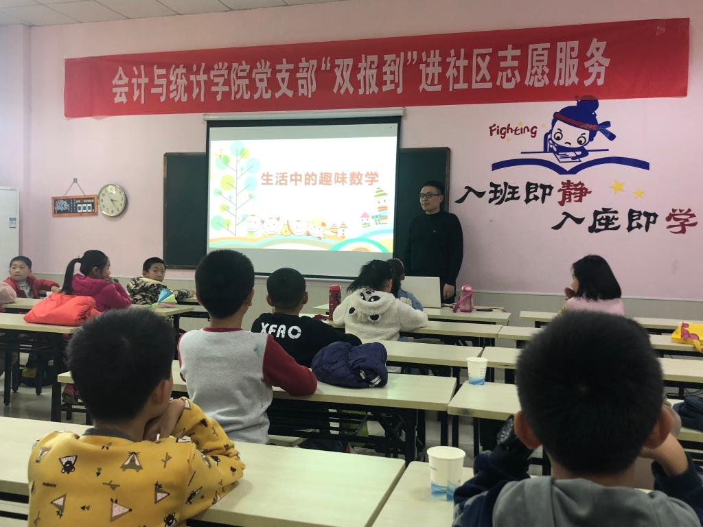 为深入开展“不忘初心、牢记使命”主题教育,进一步做实做好“双报到”社区服务活动。10月27日下午,会计与统计学院党支部组织党员到衡王府社区七彩教育培训中心开展“双报到”社区服务活动,充分发挥专业资源优势,助力社区教育培训水平。
