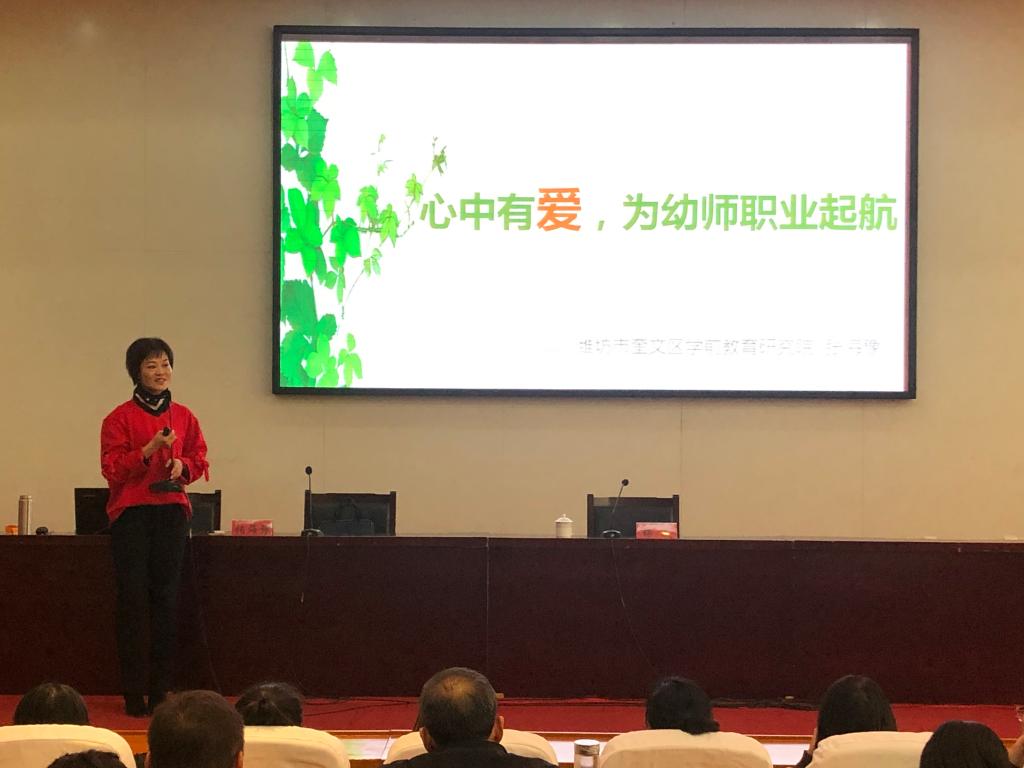 11月21日,潍坊市奎文区学前教育研究院副院长、齐鲁名师张海豫教授受邀来到我院,在海岱阁学术报告厅为我院学前教育专业师生作了题为《心中有爱,为幼师职业启航》的专题报告。张海豫是我院经山东省教育厅批准的特聘产业教授。学前教育学院党支部负责同志主持报告会。