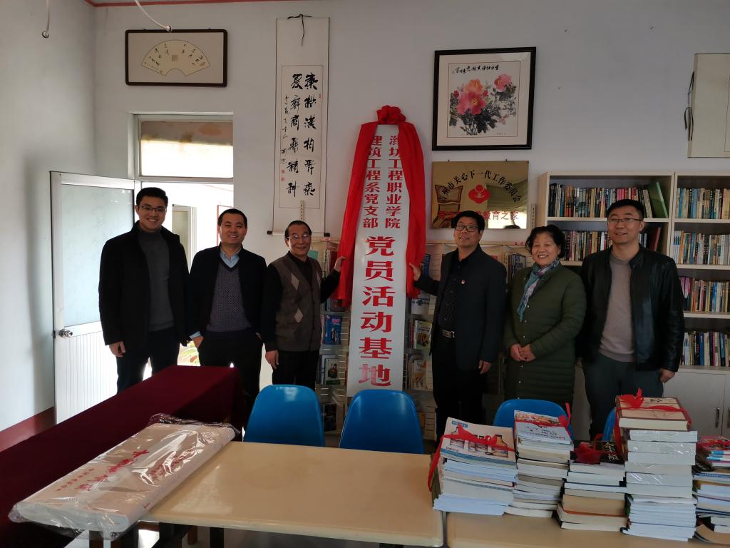 为了深入开展“不忘初心、牢记使命”主题教育,壮大志愿服务力量,2019年11月26日上午,建筑工程系党支部教师党员及学生预备党员一行5人到青州市何官镇南褚马村“悦之书屋”开展志愿服务活动,并举办了党员活动基地揭牌仪式。