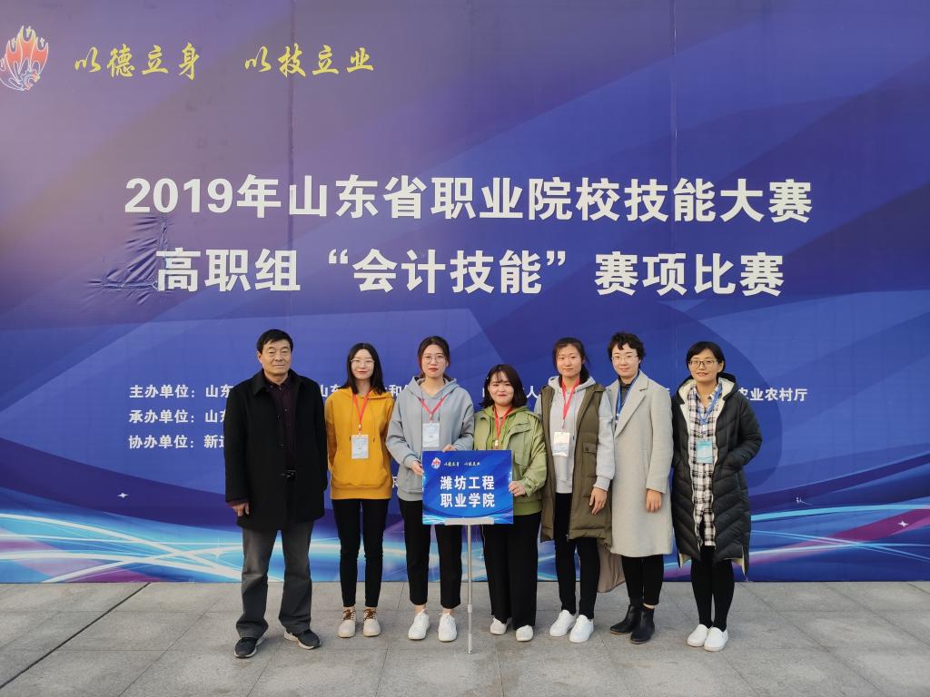 11月16日,2019年山东省职业院校技能大赛高职组“会计技能”赛项比赛在山东水利职业学院举行,来自全省48所院校的192名参赛选手参加了比赛。经过激烈角逐,来自会计与统计学院的由丁海平、李巧俐老师指导的孔薇薇、刘笑笑、李雪倩、邱至清等四位同学组成的代表队取得第六名成绩,获大赛二等奖第一名。