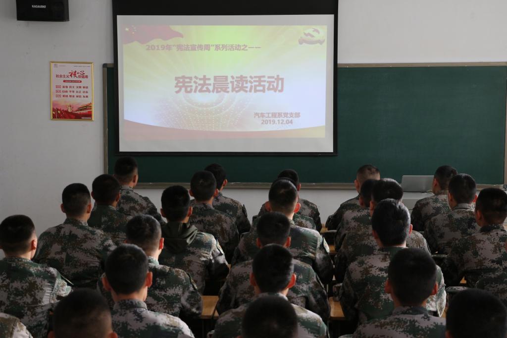 12月4日,即第六个国家宪法日,汽车工程系党支部师生一同参与国家宪法日“宪法晨读”活动,增强学生法治核心意识,树立了宪法权威与信仰。辅导员利用晚自习时间,围绕宪法的性质、发展历程、原则等召开主题班会,为学生普及宪法知识,增强法律知识储备。本次活动将宪法教育融入日常学习,营造了尊法崇法守法的良好活动氛围。