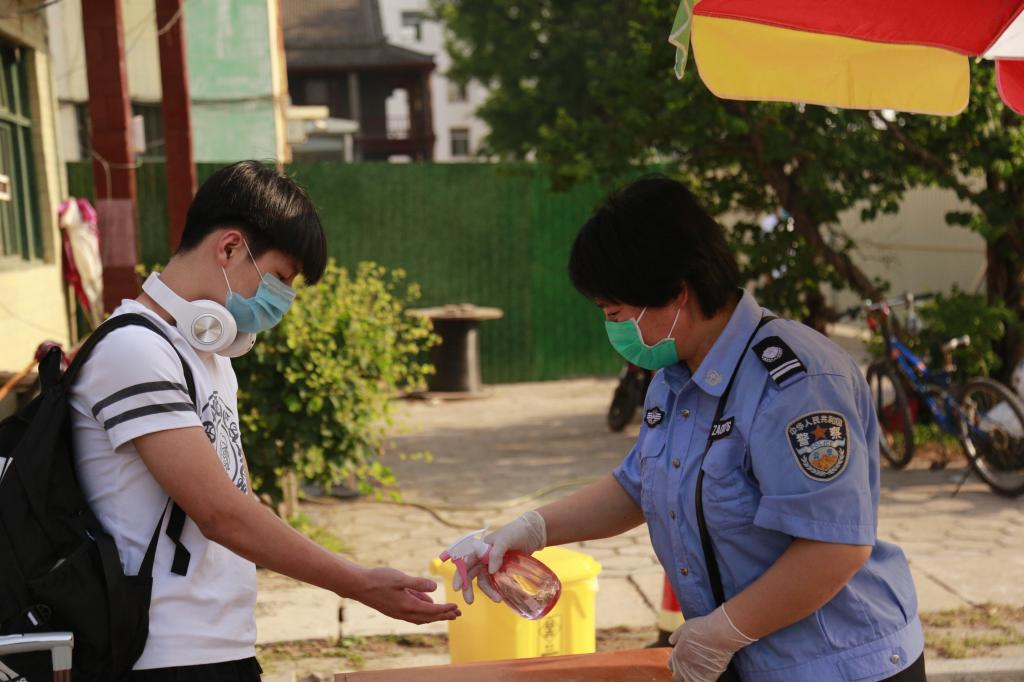 23日上午7点14分,第一位返校学生佩戴口罩到达学校门口。在工作人员帮助下,该生经过测温通道红外线测量体温、手部消毒、提交入校材料等环节,沿着规定路线到宿舍楼门前再次测量体温,完成整个入校报到过程。