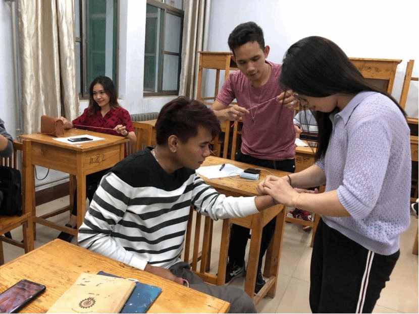 活动包括专题讲座、视频欣赏、诵读诗歌、品尝粽子和编制彩绳五个环节。活动开始,蔺莉莉老师与国际学生一起欣赏了视频“端午由来”, 视频为国际学生介绍端午节的由来和文化意义,让他们了解赛龙舟、插艾草、包粽子、配香囊、编彩绳等一系列端午习俗,共同学习了端午节有关古诗《离骚》、《端阳采撷》,还品尝了粽子感受了中国味道,最后环节 “巧手编彩绳”将活动推向高潮,国际学生沉浸在端午节的浓厚气氛中,其乐融融。
