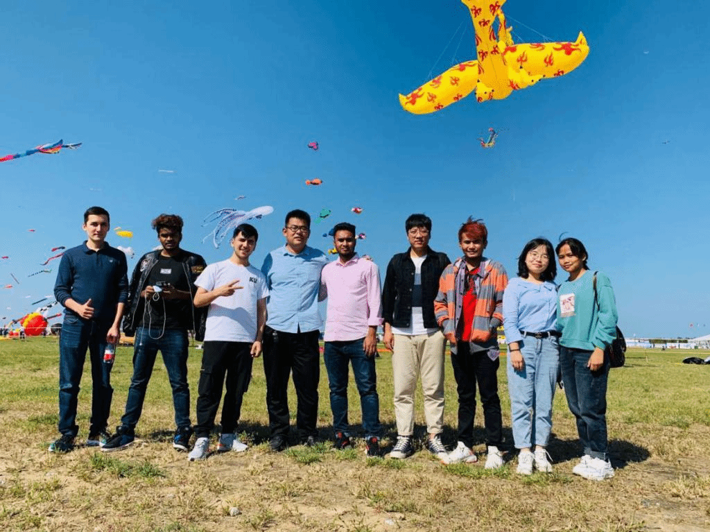 9月26日,我院来自菲律宾、孟加拉国、塔吉克斯坦、乌兹别克斯坦的留学生在老师们的带领下参加了“驻潍留学生感知潍坊国际风筝会”活动。