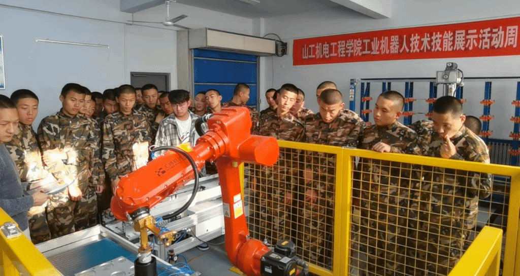 11月12日,山工机电学院开展实验实训室开放日活动,活动以“人人出彩,技能强国”为主题,参加活动学生主要以20级新生为主,并安排专业教师、技能大赛获奖选手等分别在工业机器人操作与运维实训室、工业机器人系统集成实训室等2个实训室进行现场讲解、展示、答疑。通过活动,学生们近距离体验了以工业机器人为主的先进制造技术,展现了我院在实训室建设方面的先进性、综合性,进一步弘扬了劳动光荣、技能宝贵、创造伟大的时代风尚。