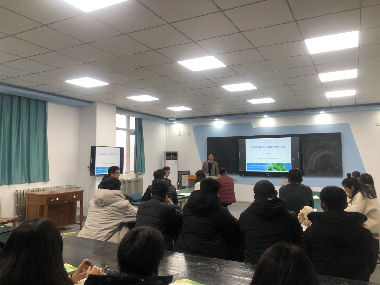 会上,王兴军教授讲解了花生分子育种新技术、花生产品的酸败变质机理、脂肪酸合成与高油酸花生发现等专业问题,与会人员认真学习,获益匪浅。