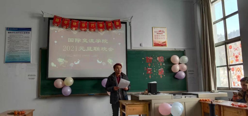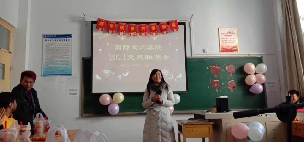 踏歌起舞,辞旧迎新。12月31日,国际交流学院中外学生迎新年联欢会在尚德楼402教室举行。国际交流学院全体教师、航空工程学院部分学生及滞留国外的14名国际学生通过线上线下相结合的方式欢聚一堂,共同迎接新的一年。
