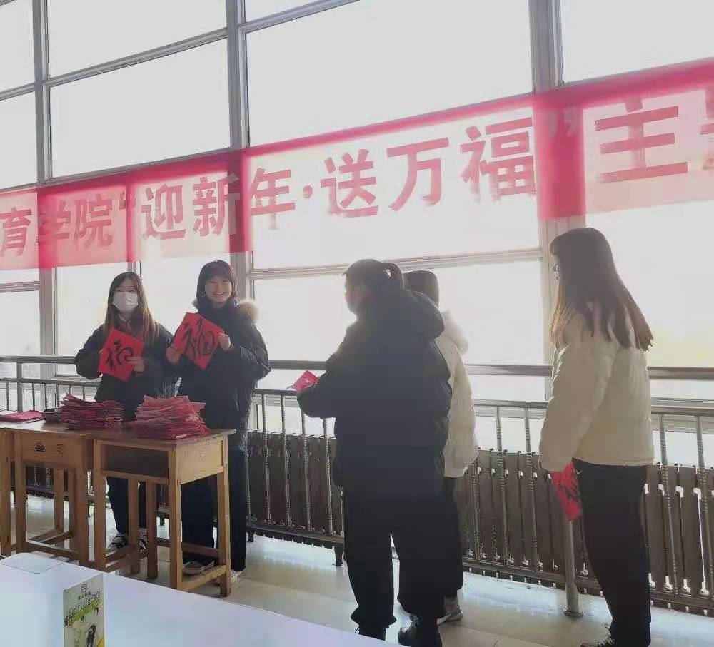 近日,教师教育学院举办“迎新年·送万福”主题活动,活动现场热,志愿者们书写发放对联和“福”字。同学们领春联、求福字,满心欢喜地拿着心仪的春联和“福”字合影,留下一张张幸福洋溢的照片。红彤彤的祝福,为冬日校园增添了暖意,丰富了大学生课余文化生活。