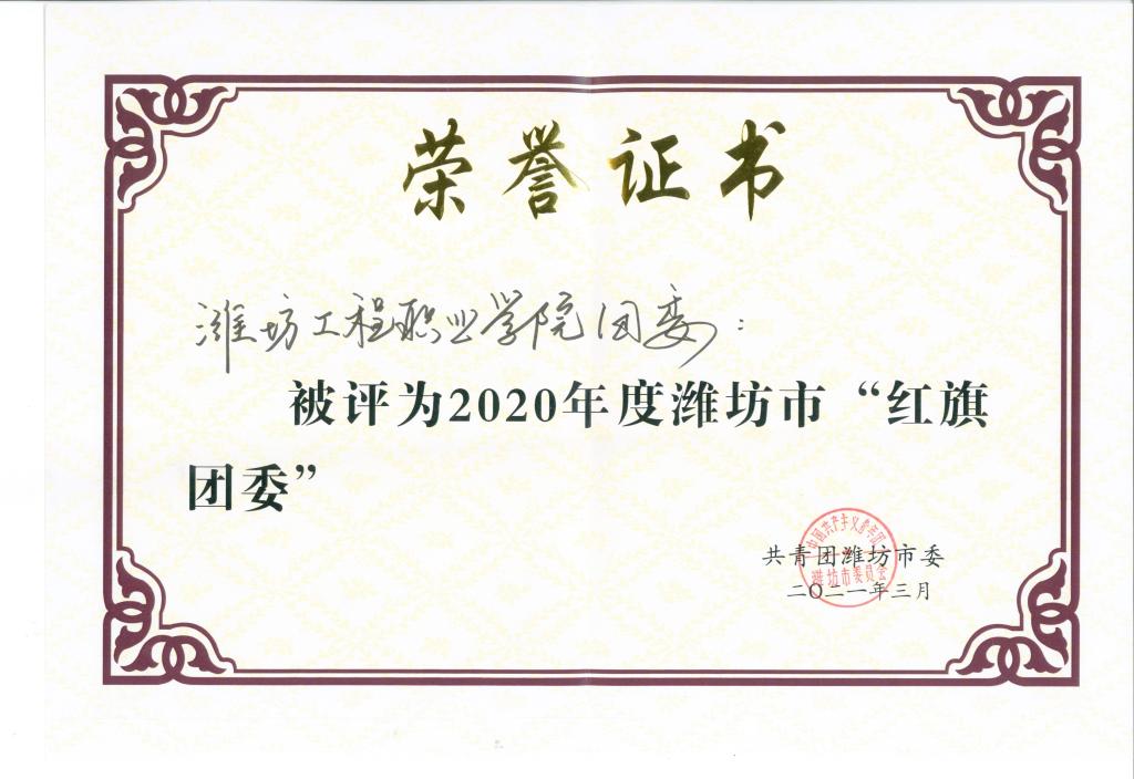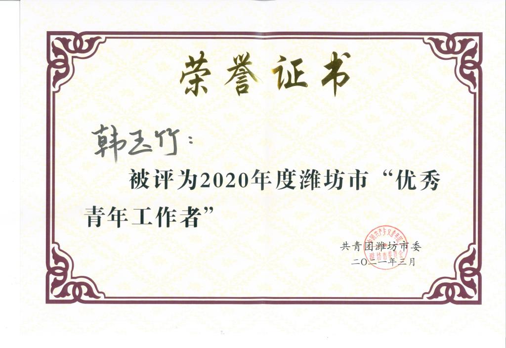 近日,共青团潍坊市委发布《2020年度工作评价表扬通报》,我院团委荣获“2020年度潍坊市五四红旗团委”称号,韩玉竹荣获“2020年度潍坊市优秀青年工作者”称号。