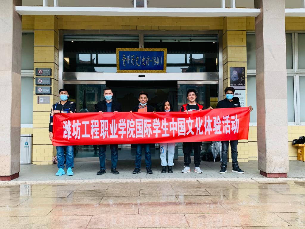 4月2日,国际交流学院组织来自菲律宾、孟加拉国、乌兹别克斯坦、塔吉克斯坦等国的国际学生到青州市博物馆参观学习。