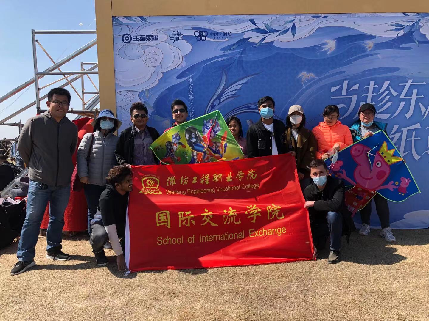 4月17日,我院来自菲律宾、孟加拉国、塔吉克斯坦、乌兹别克斯坦的留学生参加了“驻潍留学生感知潍坊国际风筝会”主题活动。